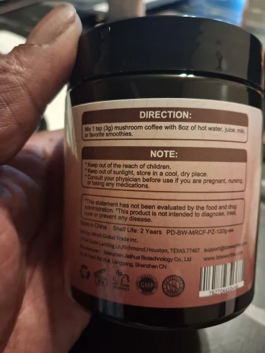 This brand is the best mushroom coffee or taste i like it a lot very fast shipping little bitty ass container but i got to order the biggest size next time but very fast shipping