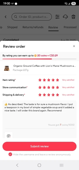 👍 As described. The taste is for sure a mushroom flavor. I put a teaspoon in my bowl of simple vegetable soup and it added a nice taste. I will order this brand again. Recommend
